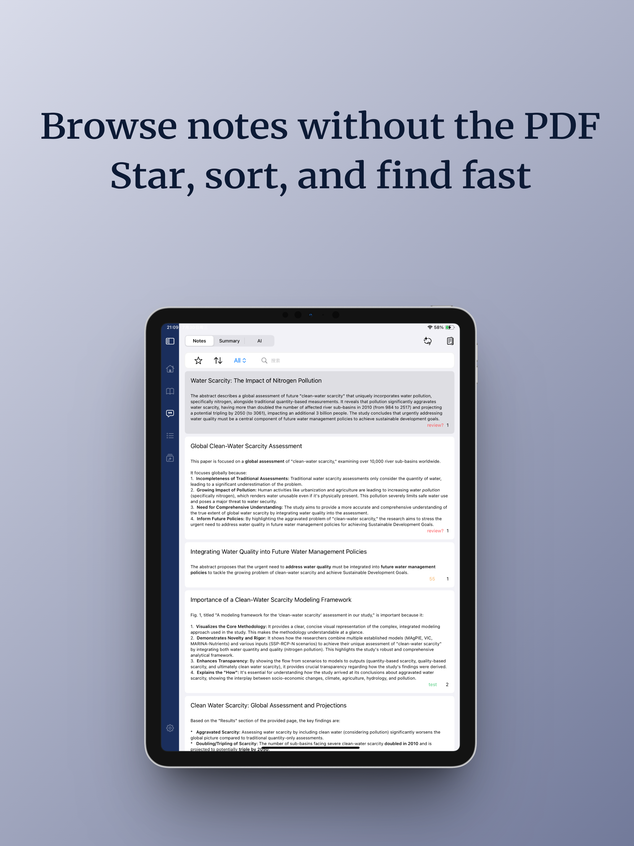 In the note management page, you can sort, search, bookmark, and review all your notes with ease.