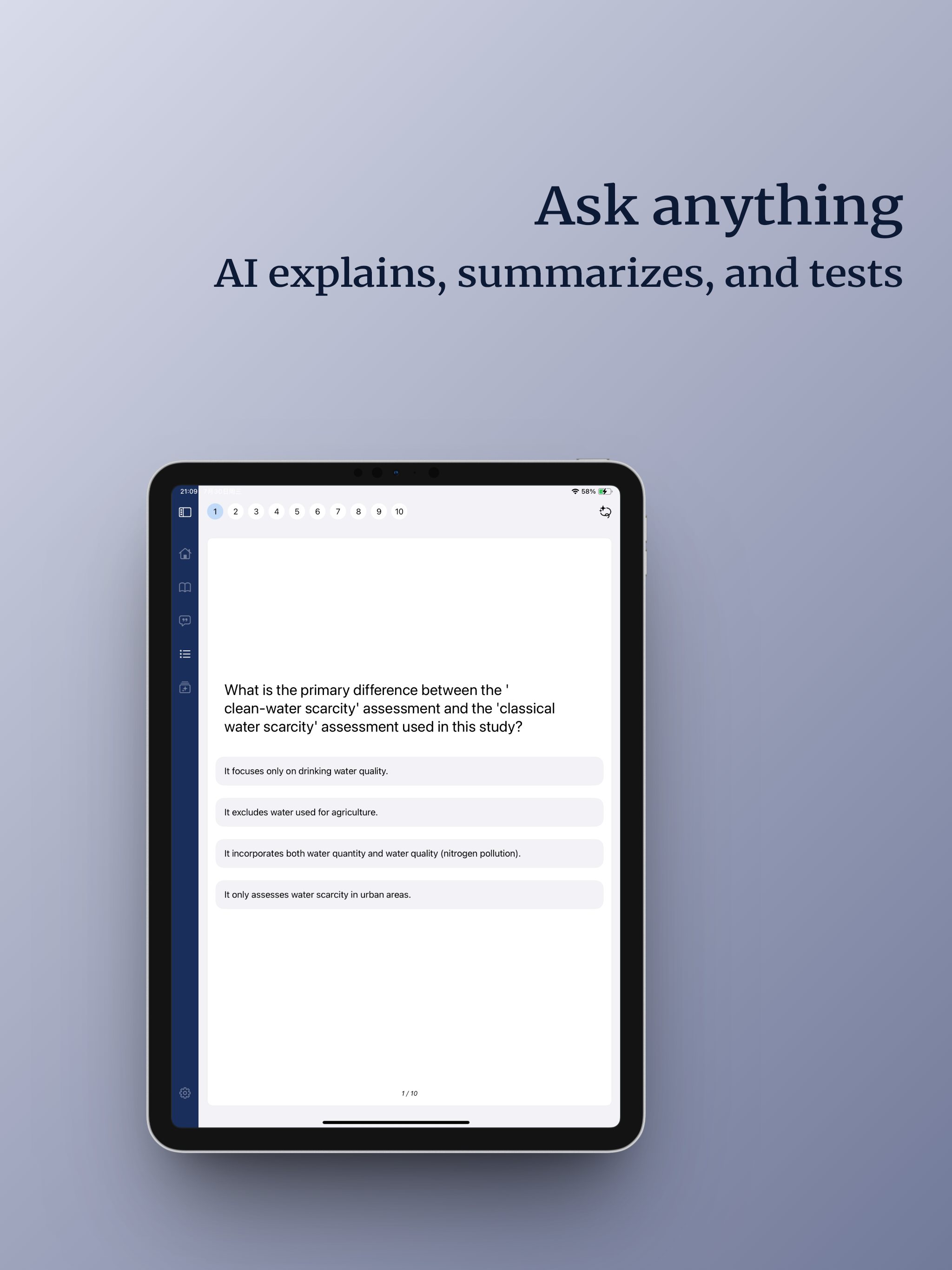 - Quizzes: Instantly generate test questions for each PDF to reinforce comprehension and retention.